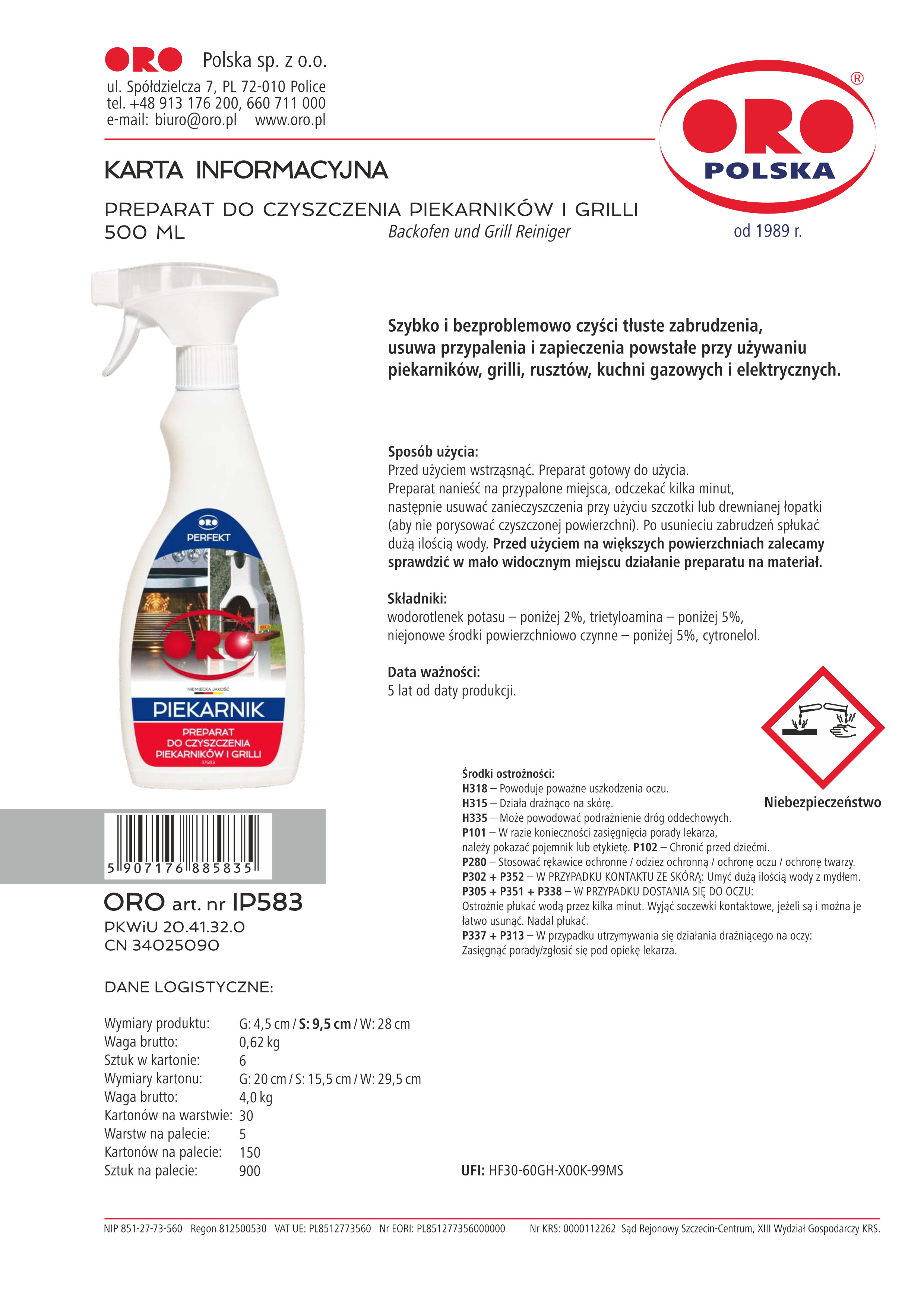 Pojemność: 500 ml, Karton: 6 szt. Paleta: 90 kartonów