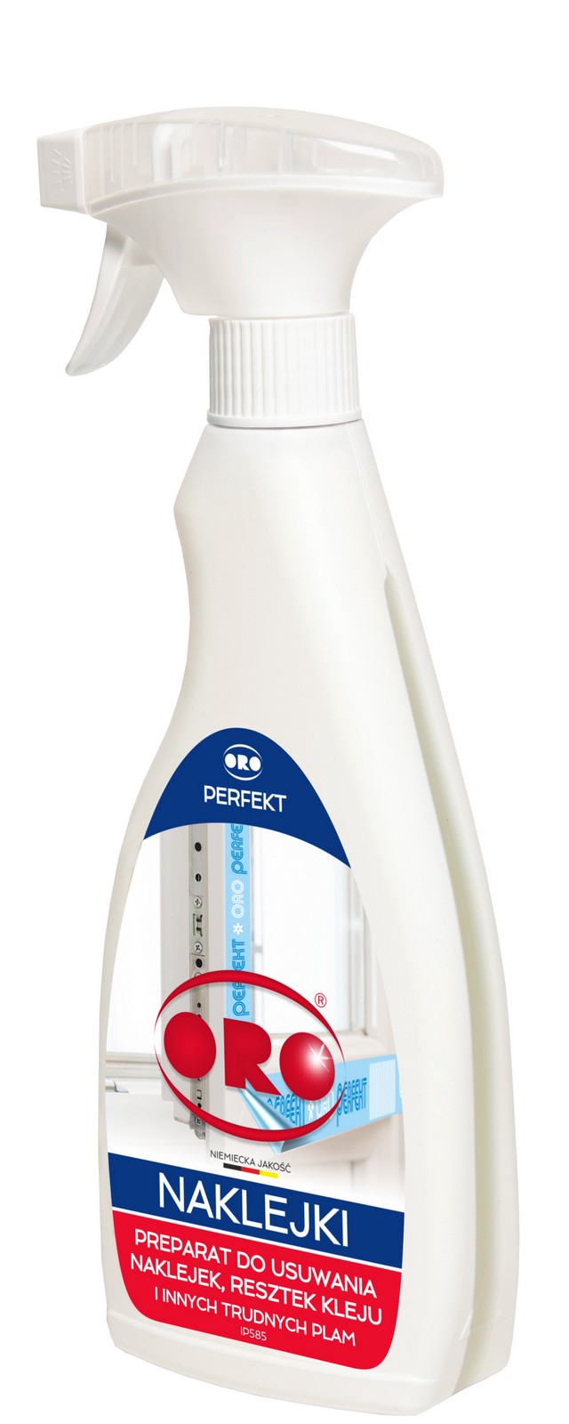 Usuwa naklejki, etykiety, resztki kleju, gumę, szminkę, atrament, tusz, olej, tłuszcz, sadzę, smołę i inne, z drzwi, okien, szyb, PCV, kamienia i tekstyliów.