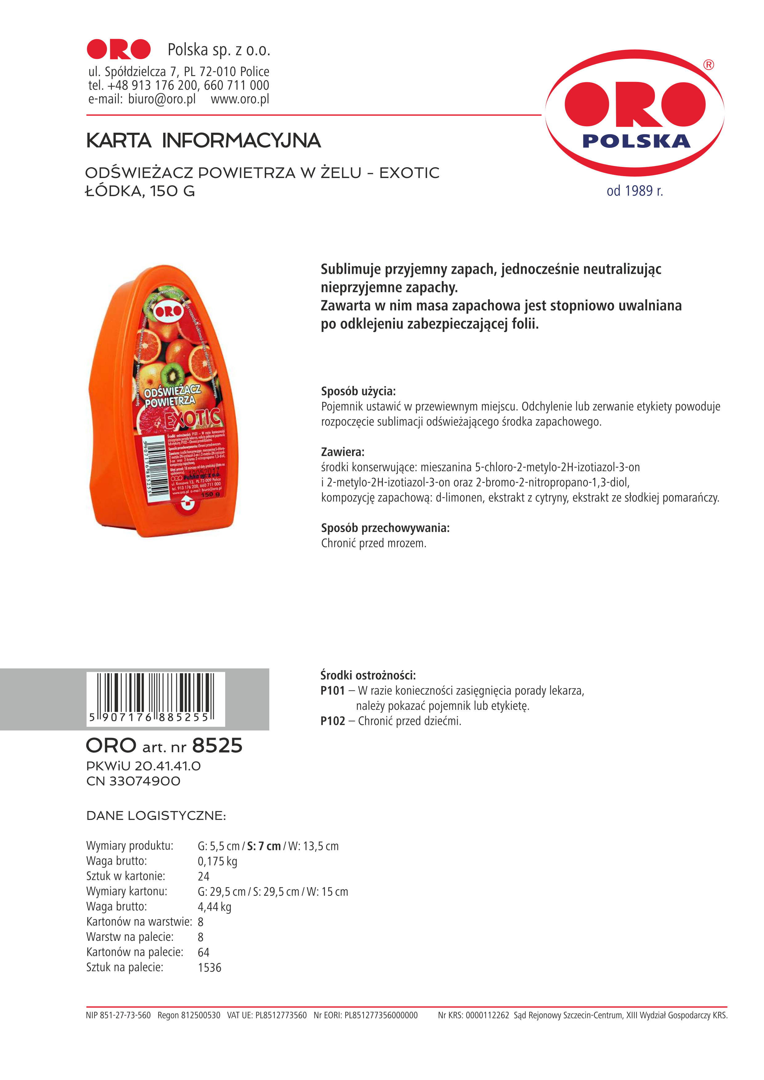 Skutecznie odświeża powietrze i usuwa nieprzyjemne zapachy. Pozostawia odświeżający zapach egzotycznych owoców.